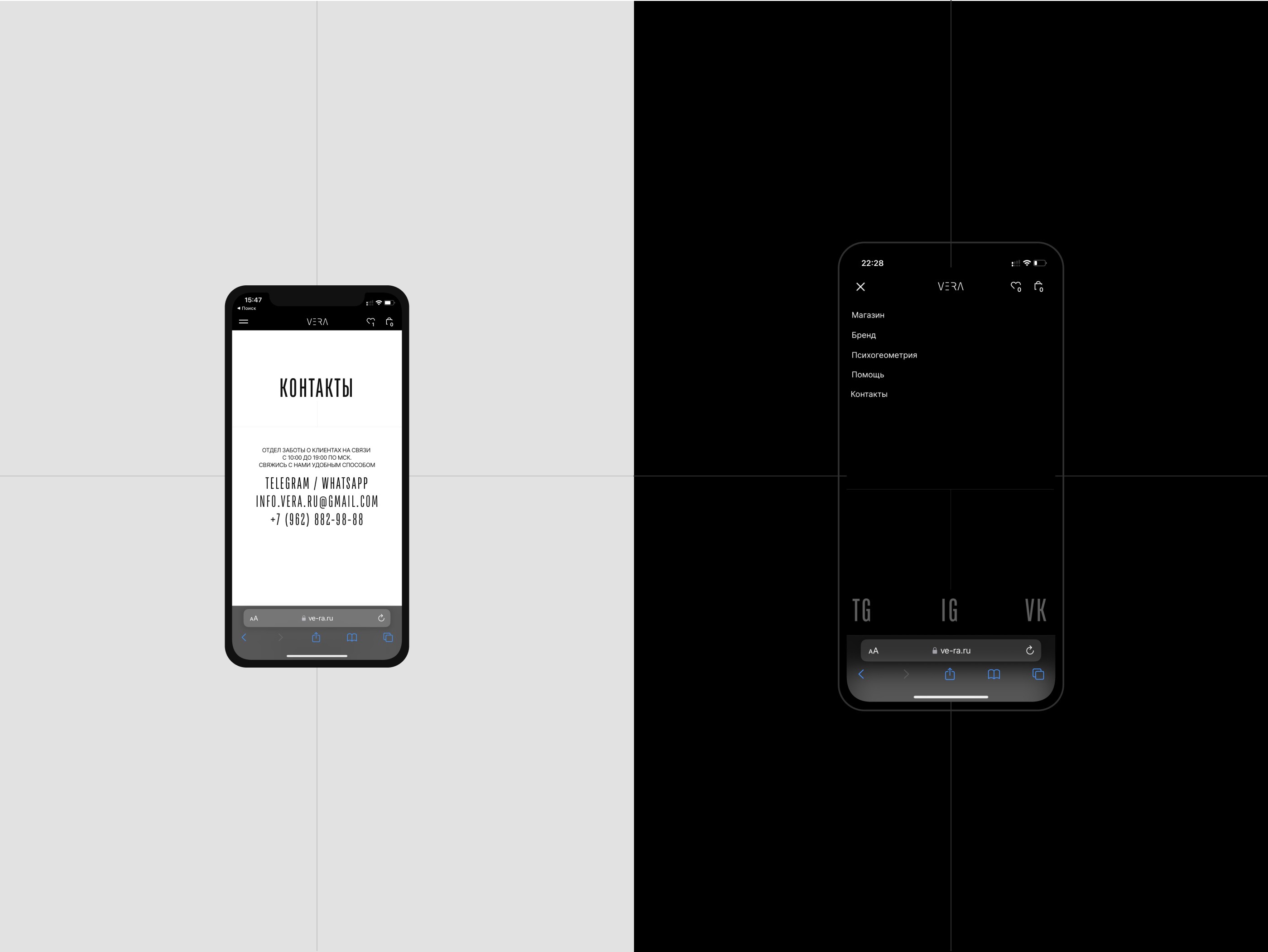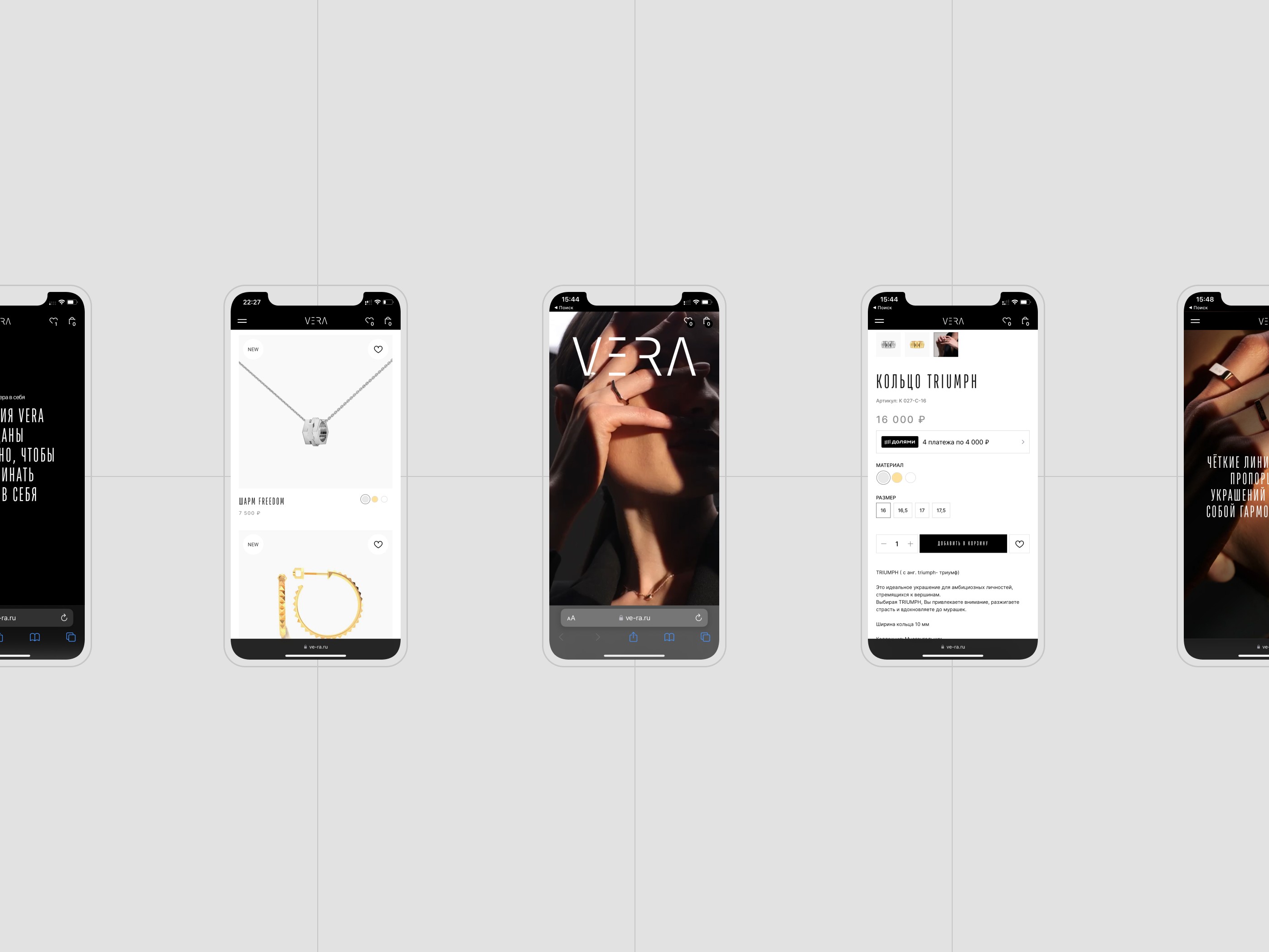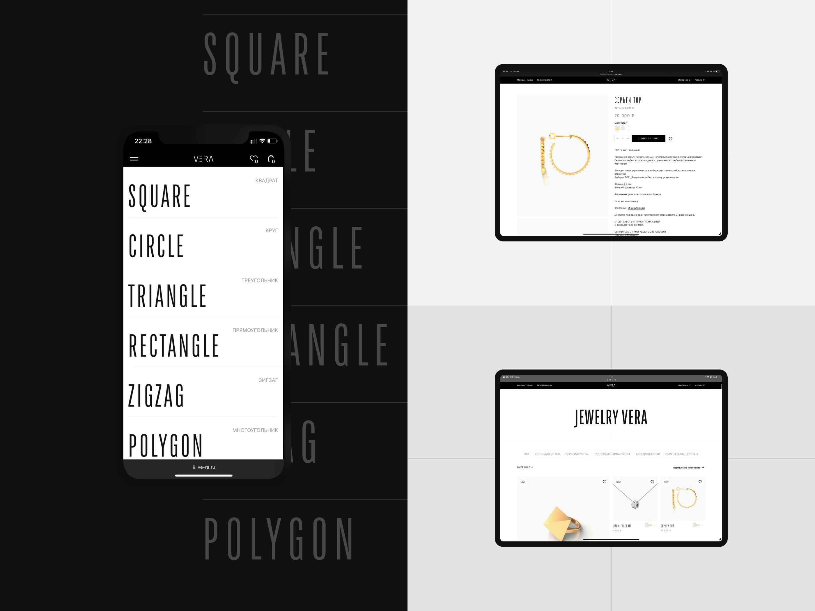VERA is an online store for the manufacturer of modern and stylish jewelry. The task of the project was to create a light and at the same time masculine website in order to convey the weight and massiveness of the jewelry. As a result of the project, many standard CSS tilde styles were rewritten, and various third-party modifications were added.